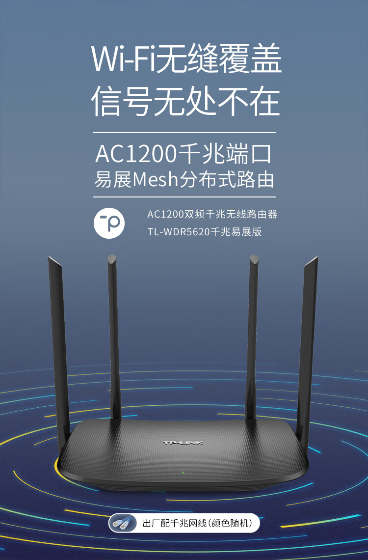商品名称:TP-LINK双千兆路由器 易展mesh分布式 AC1200无线家用穿墙 5G双频 WDR5620千兆易展版 配千兆网线 IPv6