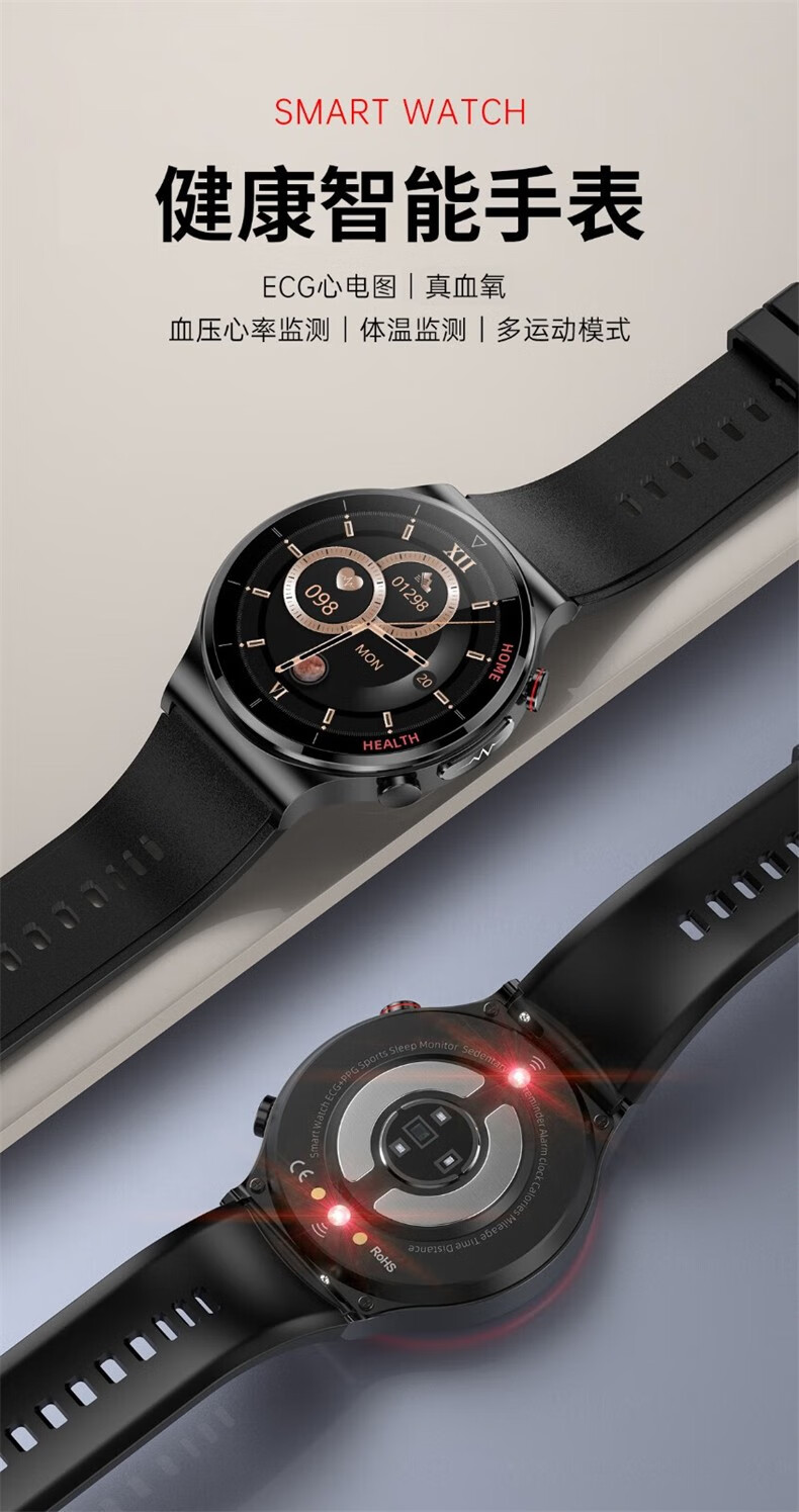 艾特科尔(AITLCOL) 激光辅助医理疗三高血糖智能老人男女心率心电图血氧睡眠多功能级运动手腕表 智能健康手表 低调蓝